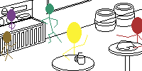 그러면 이렇게 사람, 사물, 선술집 내부 풍경 스캐치가 완성된다. 사실 사람도 그려야 하는데 그리다보면 내부 분위기나 풍경이 어떻게 그려질지 몰라서 사람은 형태만 그려놓았다.