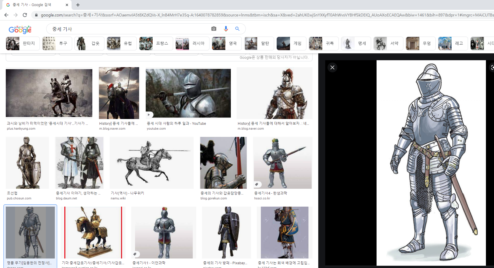 우선 구글에서 중세 기사 이미지가 어떤 것이 있는지 찾아봤다.
